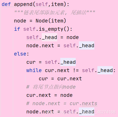 append(item) 链表尾部添加元素