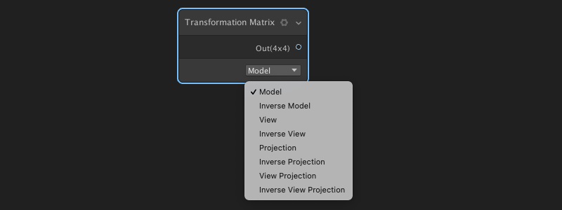 变换矩阵节点:定义了常用的4x4矩阵值: