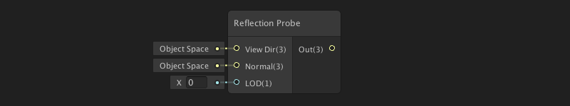 反射探针节点:提供对距离对象最近的反射探针检测器的访问。通用渲染管线(URP)支持,高清渲染管线(HDRP)不支持此节点。