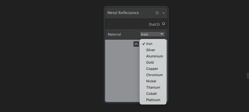 下拉参数分别为:铁、银、铝、金、铜、铬、镍、钛、钴、平台选择要输出的材料值。