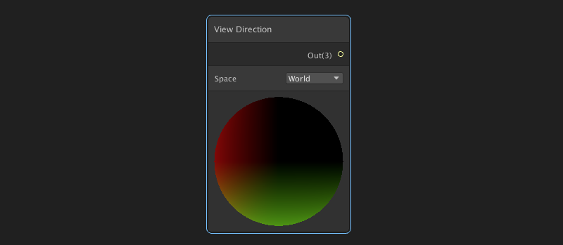 视图方向节点:返回模型中的顶点位置到摄像机的观察方向。四种模式和2.4(Screen Position 节点)解释一致。常用于计算高光,物体观察方向:使用相机的坐标向量 - 物体的坐标向量 = 物体的观察方向