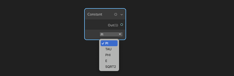 常量节点:定义一个一维常量的数字常数,选项值为: