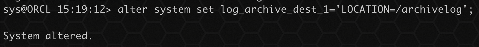 alter system set log_archive_dest_1='LOCATION=/archivelog';