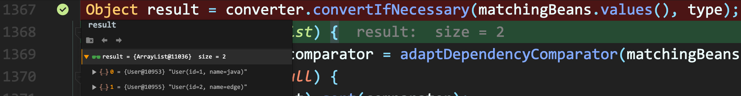 Object result = converter.convertIfNecessary(matchingBeans.values(), type);