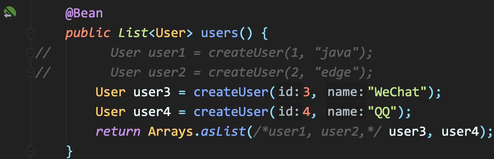 有了集合类型的自动注入后,即可收集零散的用户Bean:
