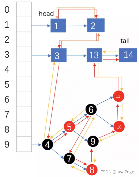 由此得知,通过在 HashMap 基础上新增的头尾节点,节点的 before 和 after 属性,就能实现在每次新增时,把节点直接追加到尾节点,即可达到维护按照插入顺序的链表结构的目的!
