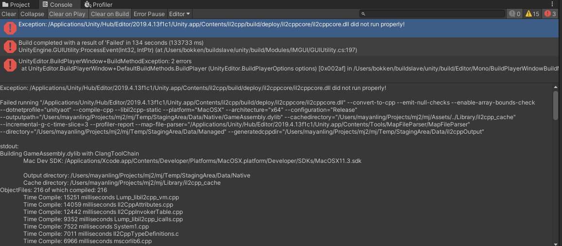 Unity 之 发布 Mac 报错 il2cppcore.dll did not run propertly