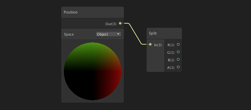 再次创建Posinton和Split节点,将需要Posinton节点的Space调整为Object,并连接如下: