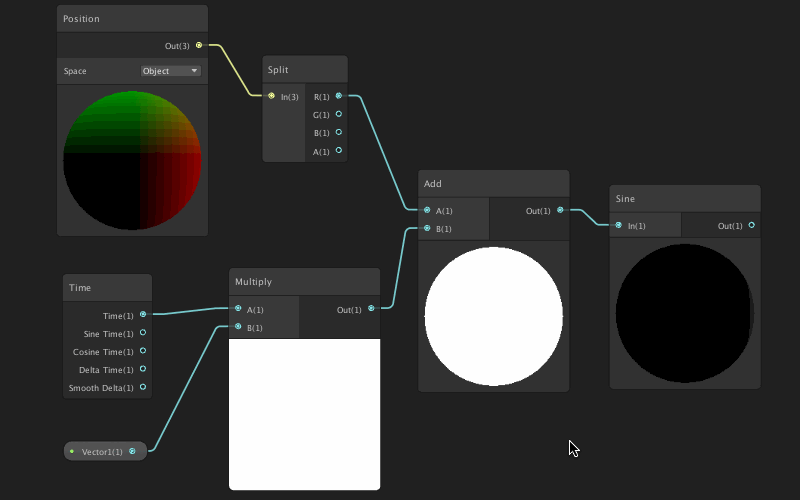 这时将Sine节点输出连接到2步骤中,留的Y轴输入,即可在预览图中看到一个漂浮的效果: