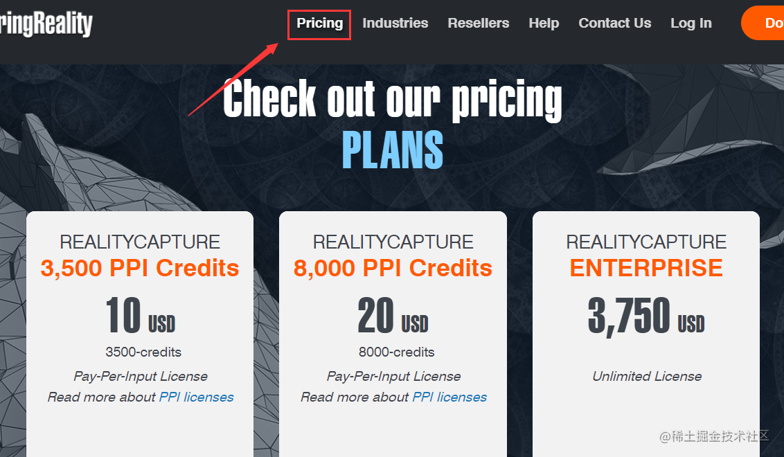 可以从Reality Capture的官网上直接进行下载,不过该软件是收费的,并且价格并不便宜(对于个人来说)