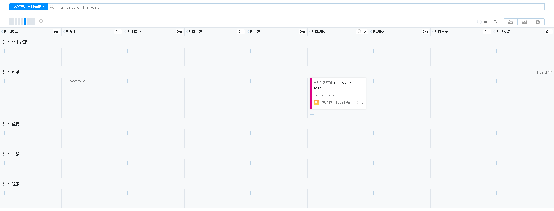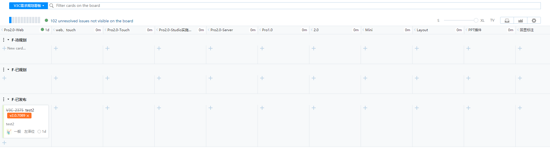 - 进入到测试阶段的时候,测试过程提交的Bug需要关联到对应任务,直到所有的缺陷被消除后才可以将任务卡片拖到 “待发布” 列。