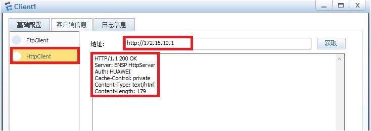 客户端192.168.10.1 的连接配置如图所示,获取到数据表示HTTP连接成功。