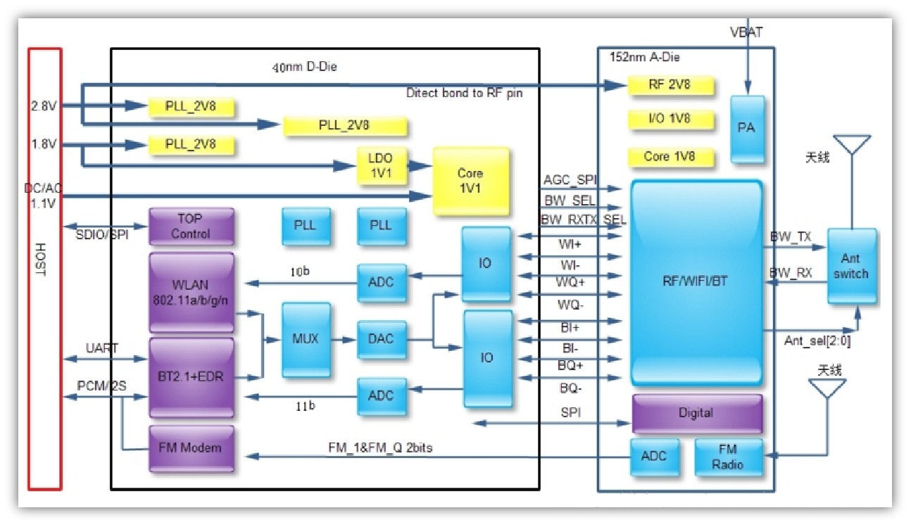蓝牙芯片通过UART、USB、SDIO、I2C、PcCard和主控芯片通信
