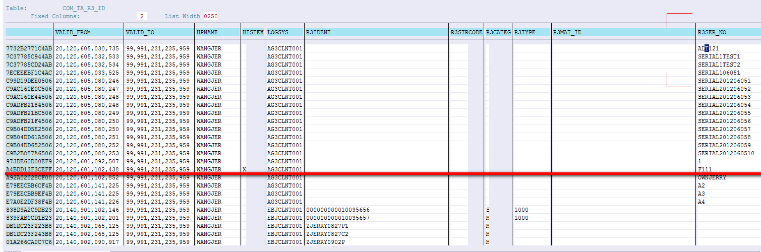 第二类的例子:ERP系统里设备的ID存储在字段R3IDENT里: