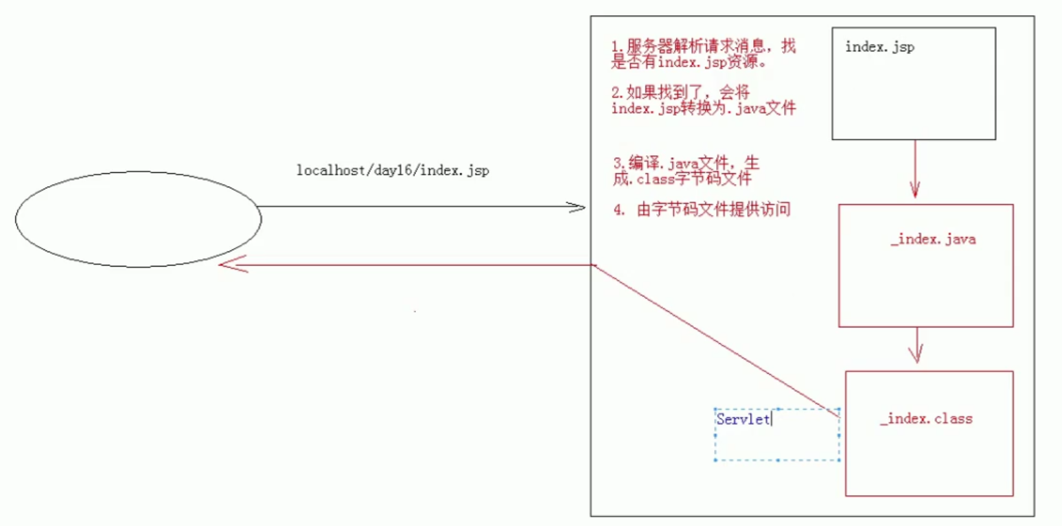 JSP,Java Server Pages,Java服务器端界面,可以理解为一个特殊页面,既可以定义html标签,又可以定义Java代码。可以简化书写!