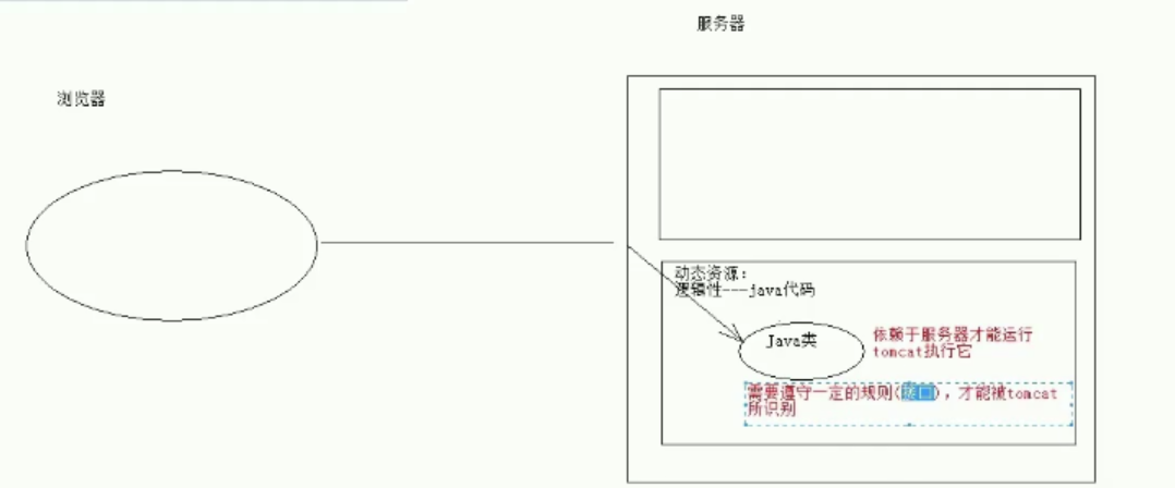 Servlet:Server applet,是运行在服务器端的小程序,Servlet就是一个接口,定义了Java类被浏览器访问到(tomcat识别)的规则。需要我们自定义一个类,实现Servlet接口,覆写方法。