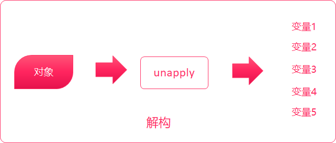 之前我们学习过了,实现一个类的伴生对象中的apply方法,可以用类名来快速构建一个对象。伴生对象中,还有一个unapply方法。与apply相反,unapply是将该类的对象,拆解为一个个的元素。