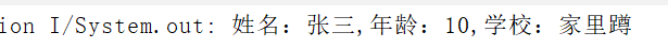 System.out.println("姓名:"+student.getName()+",年龄:"+student.getAge()+",学校:"+student.getSchool());