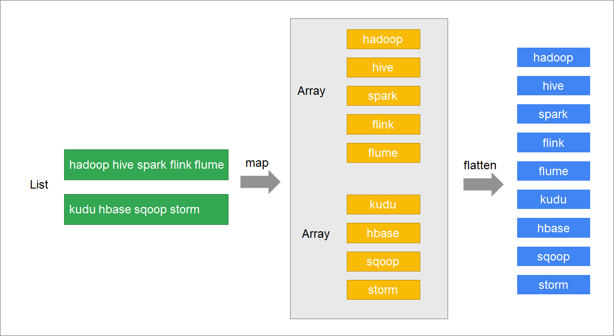 res7: List[String] = List(hadoop, hive, spark, flink, flume, kudu, hbase, sqoop, storm)