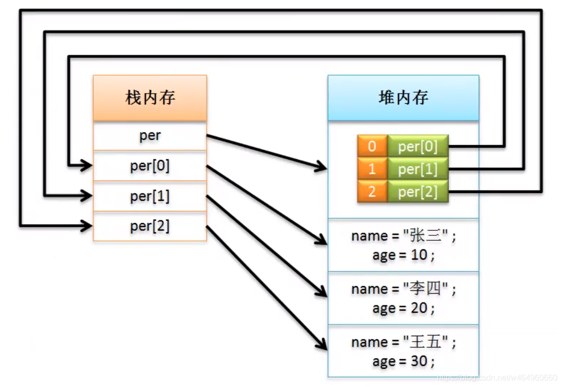 引用数据类型分析基本一致,与对象的流程一样的,唯一的区别就是普通类的对象是保存属性,利用属性名称操作,而数组保存的是内容,利用索引来操作。