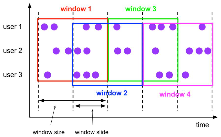GROUP BY [gk], HOP(timeCol, slide, size)