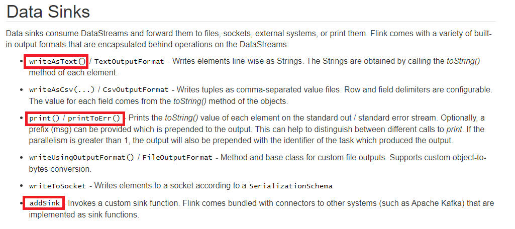 * 4.ds.setParallelism(1).writeAsText("本地/HDFS的path",WriteMode.OVERWRITE)