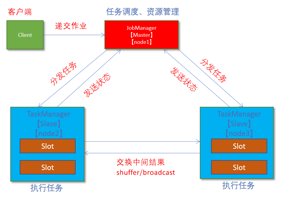 - JobManager负责申请任务运行所需要的资源并管理任务和资源,