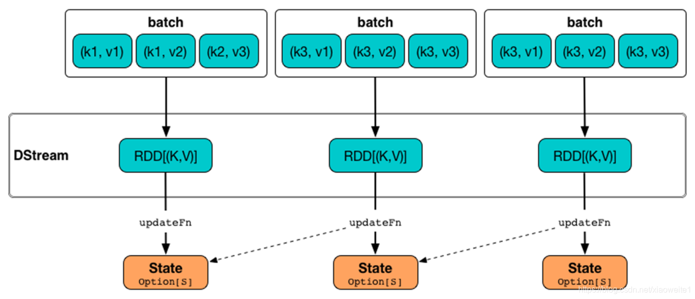 统计全局的key的状态,但是就算没有数据输入,他也会在每一个批次的时候返回之前的key的状态。假设5s产生一个批次的数据,那么5s的时候就会更新一次的key的值,然后返回。