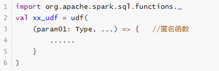 使用org.apache.sql.functions.udf函数定义和注册函数,在DSL中使用,如下方式: