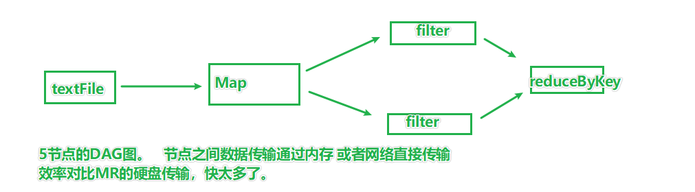 Spark会尽量安排DAG中的数据流转在内存中流转。尽量避免网络。
