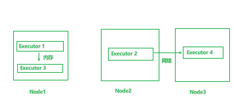 如果Executor1和3在同一个节点之上,那么内存传输即可