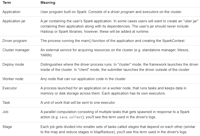 官方文档:http://spark.apache.org/docs/2.4.5/cluster-overview.html#glossary