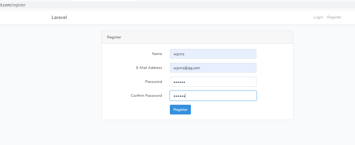 这样就创建好auth脚手架了,这样页面就可以访问了,但是登录注册还不能使用。