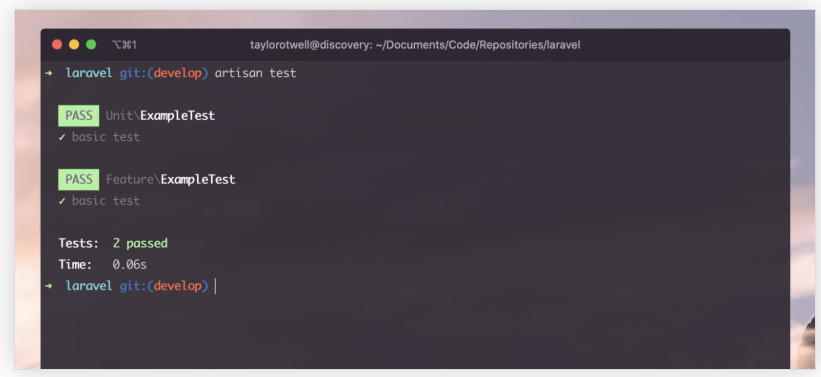 除了 phpunit命令之外,现在可以使用 test Artisan 命令来运行测试。 Artisan 测试运行器提供了漂亮的控制台,以及有关当前正在运行的测试的更多信息。 此外,运行器将在第一次测试失败时自动停止: