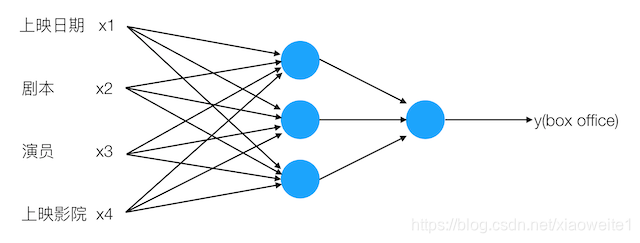 输入影响票房的N个因素,这里举例四个因素,结果输出一个Y预测票房结果