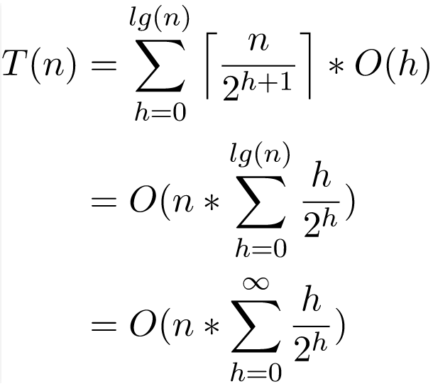 注意:算法面试中是不要求推导的,你只需要记住,初始化一个大小为 n 的堆,所需要的时间是 O(n) 即可。