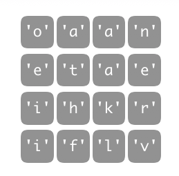 单词必须按照字母顺序,通过相邻的单元格内的字母构成,其中“相邻”单元格是那些水平相邻或垂直相邻的单元格。同一个单元格内的字母在一个单词中不允许被重复使用。