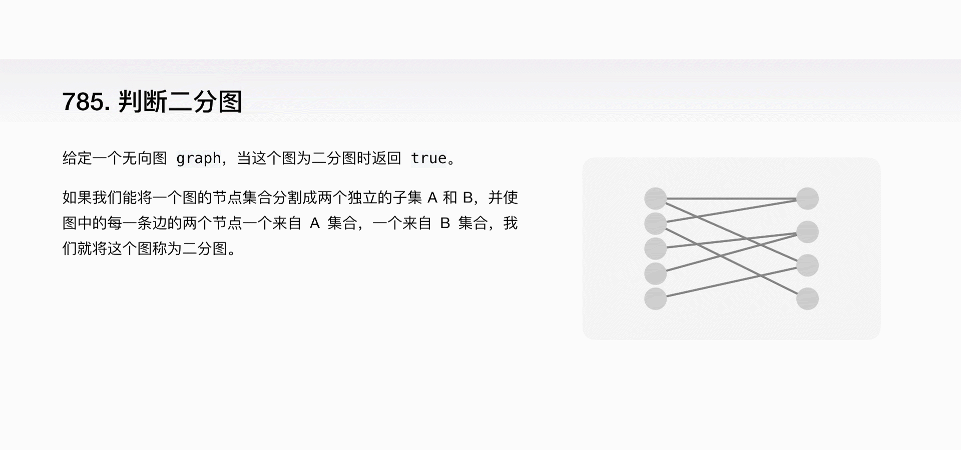 LeetCode 第 785 题:给定一个无向图 graph,当这个图为二部图时返回 true。