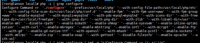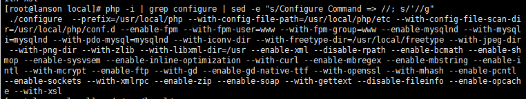 php -i | grep configure | sed -e "s/Configure Command => //; s/'//g"