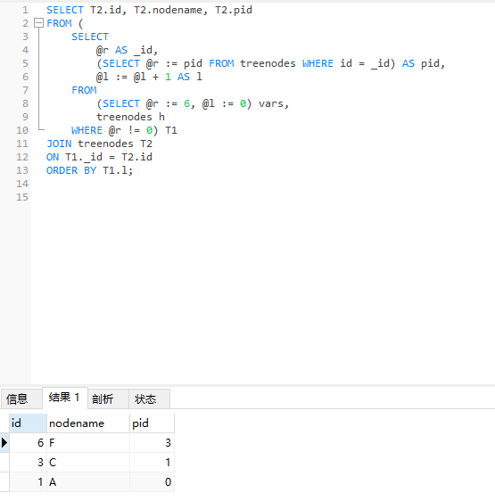 (SELECT @r := pid FROM treenodes WHERE id = _id) AS pid,