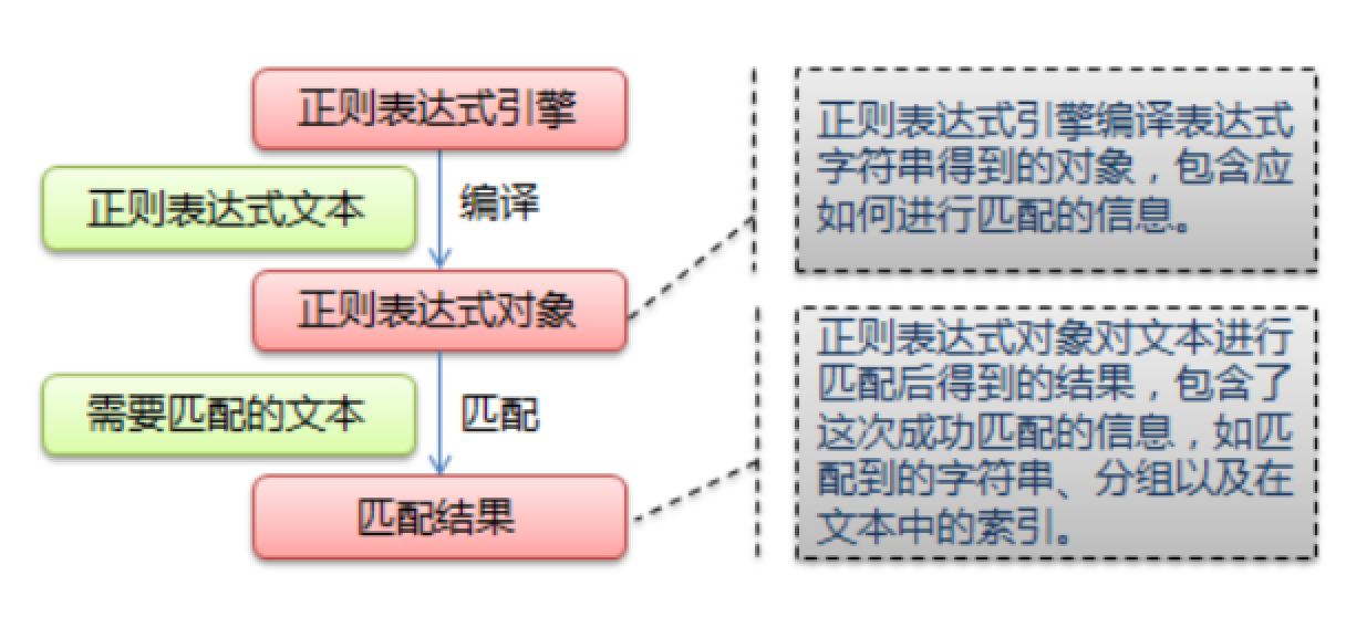 Pattern对象提供的一系列方法对文本进行匹配查找,获得匹配结果,一个 Match 对象。 - 最后使用