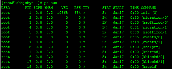 ps命令最常用的还是用于监控后台进程的工作情况,因为后台进程是不和屏幕键盘这些标准输入/输出设备进行通信的,所以如果需要检测其情况,便可以使用ps命令了.