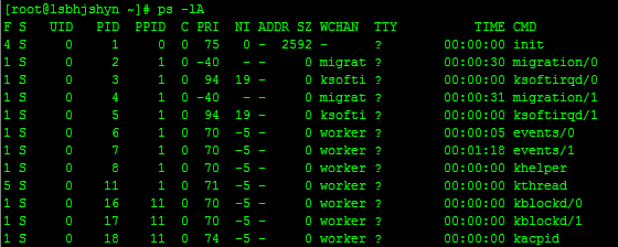 # WCHAN 目前这个程序是否正在运作当中,若为 - 表示正在运作;