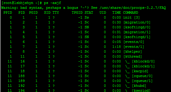 通过man ps可以获得ps的详细参数用法。下面可以通过示例看看效果: