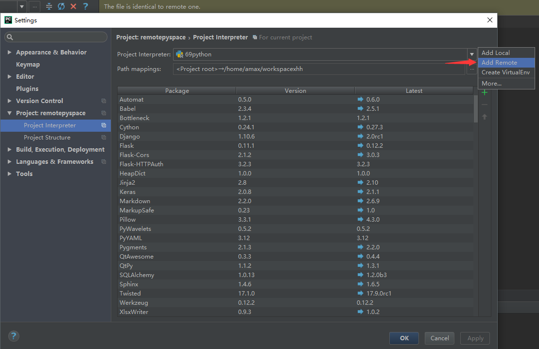 配置远程python解释器