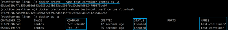 作用: 利用镜像创建出一个Created 状态的待启动容器