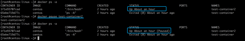 命令格式: docker pause CONTAINER [CONTAINER...]
