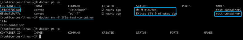 命令格式: docker container rm [OPTIONS] CONTAINER [CONTAINER...] 或者 docker rm [OPTIONS] CONTAINER [CONTAINER...]