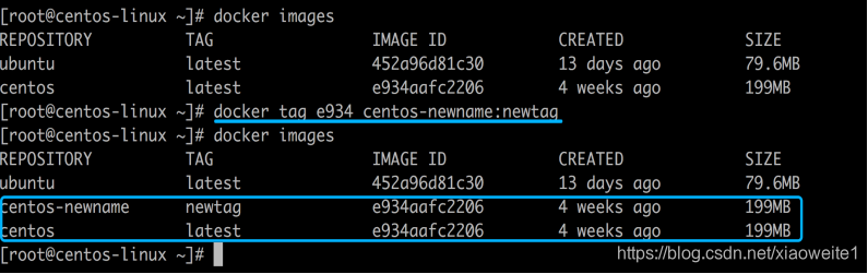 作用: 对本地镜像的NAME、TAG进行重命名,并新产生一个命名后镜像