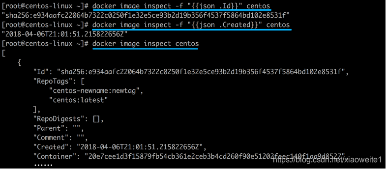 命令格式: docker image inspect [OPTIONS] IMAGE [IMAGE...] 或者 docker inspect [OPTIONS] IMAGE [IMAGE...]